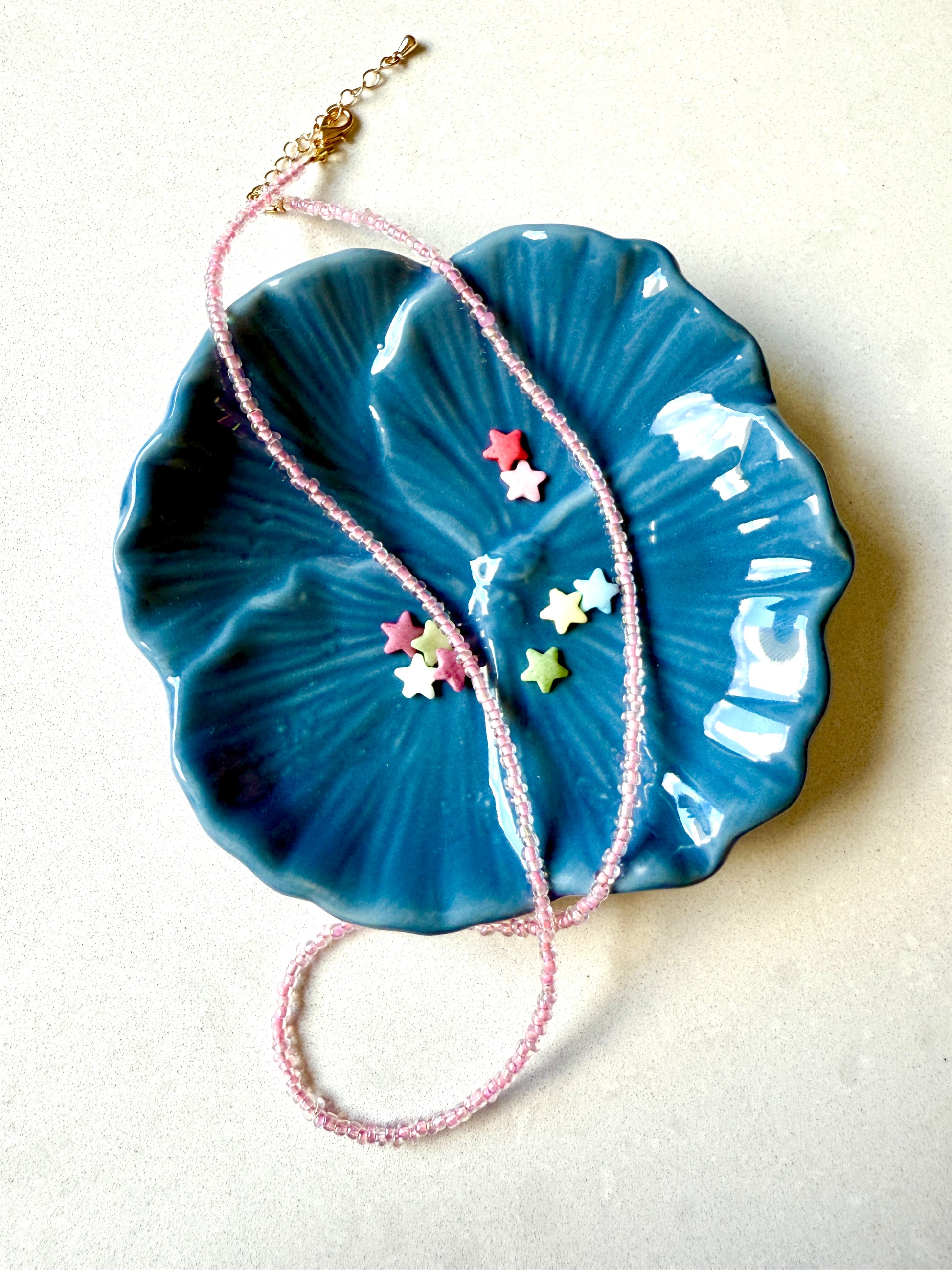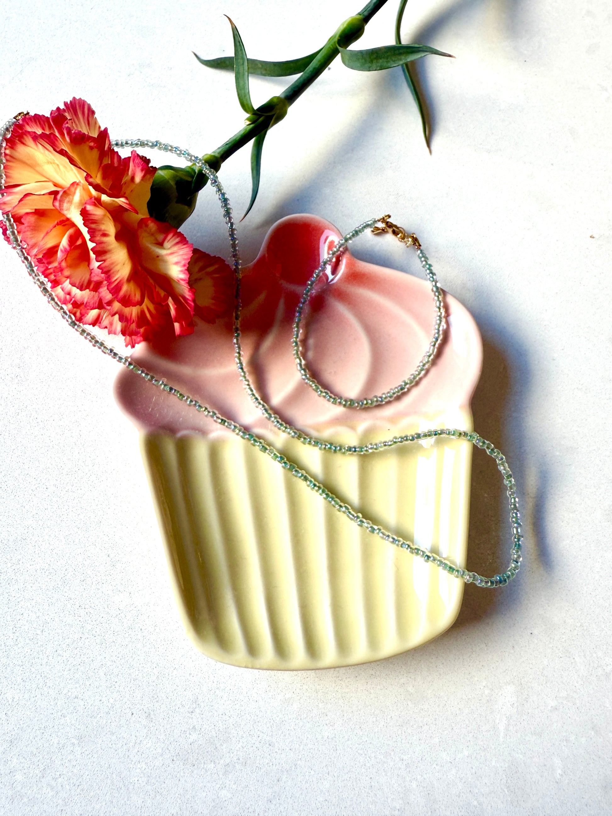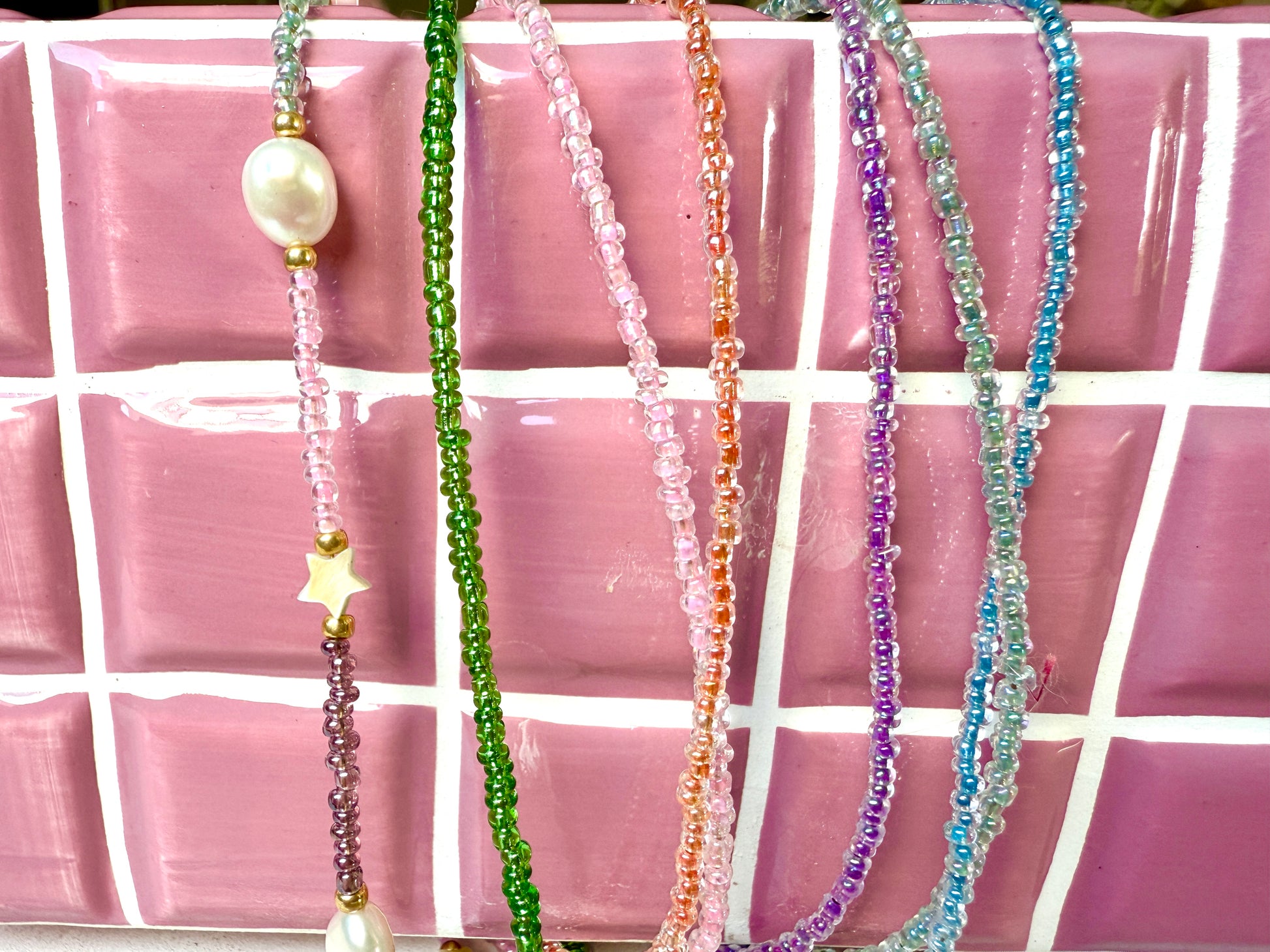 Sirena, oppkalt etter det spanske og italienske ordet for havfrue, er et enkelt og elegant smykke inspirert av havets ro og skjønnhet. De små, ensfargede rocailleperlene i glass finnes i et utvalg nydelige farger.