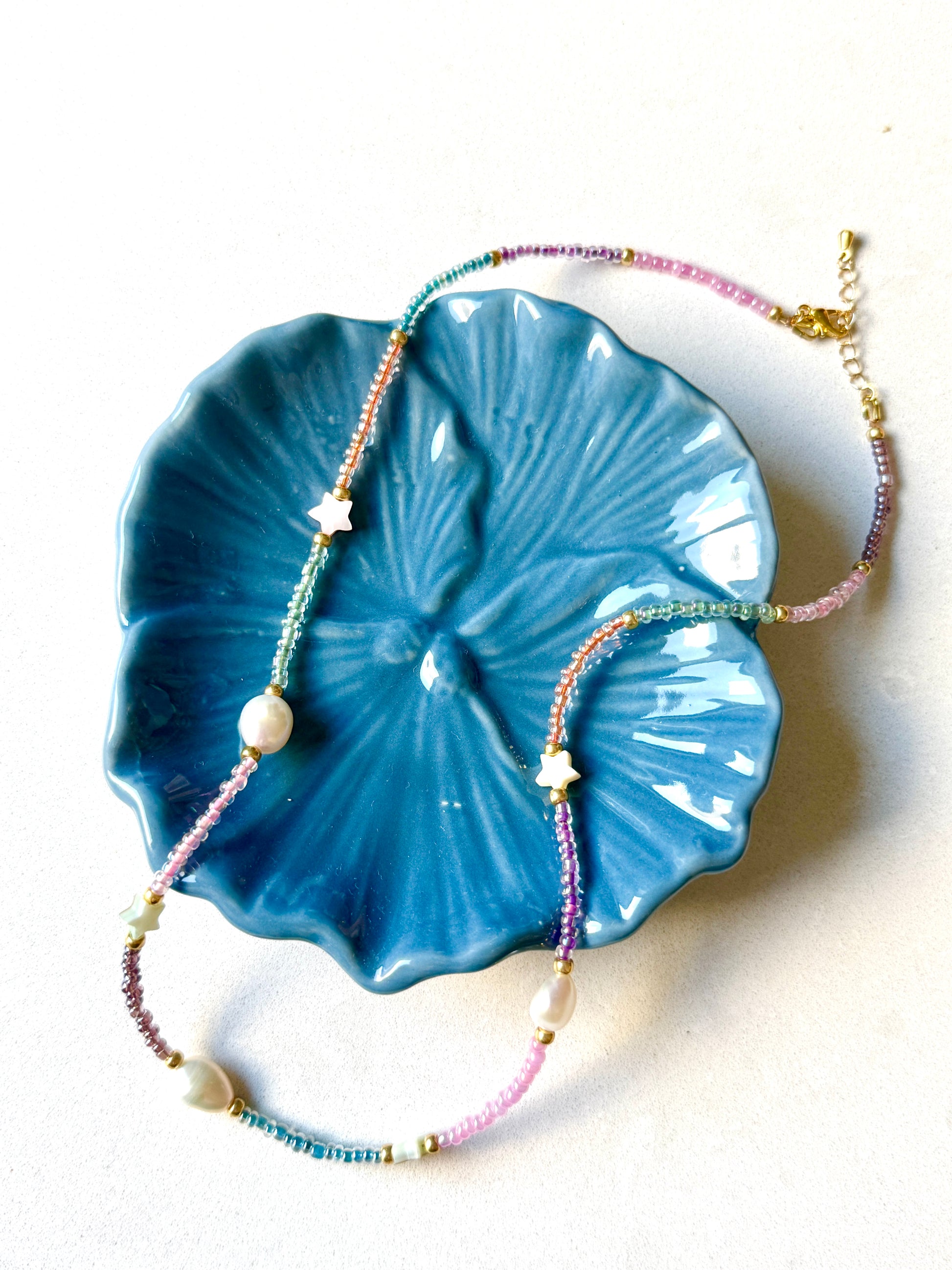 Med glitrende glassperler i mange farger, fanger Zorya både solens varme og månens ro - som et lite univers du kan bære med deg.